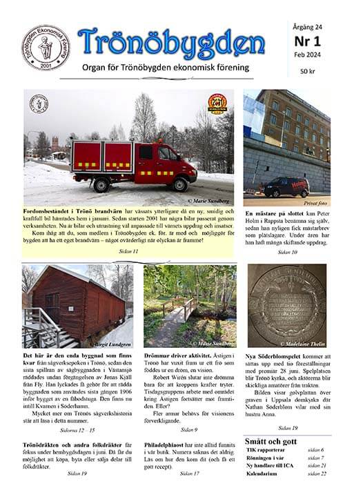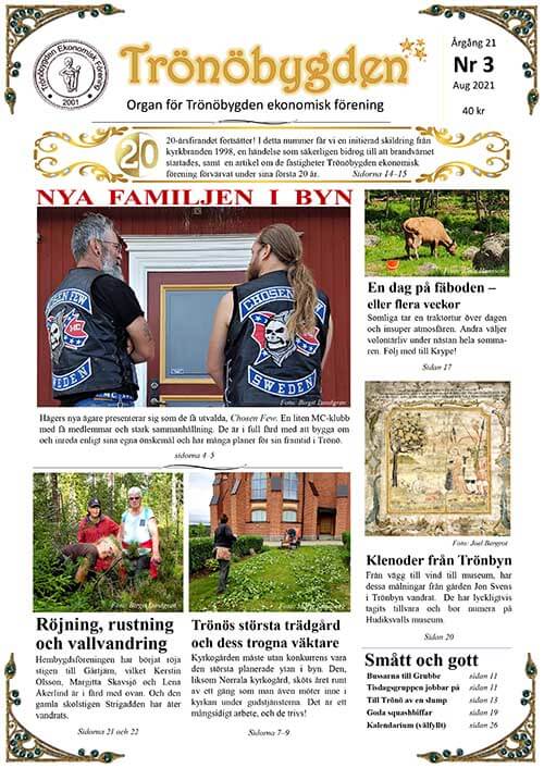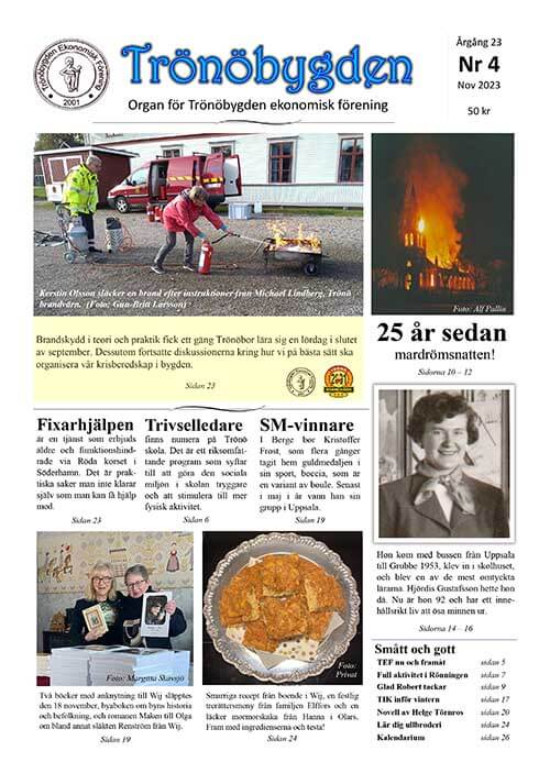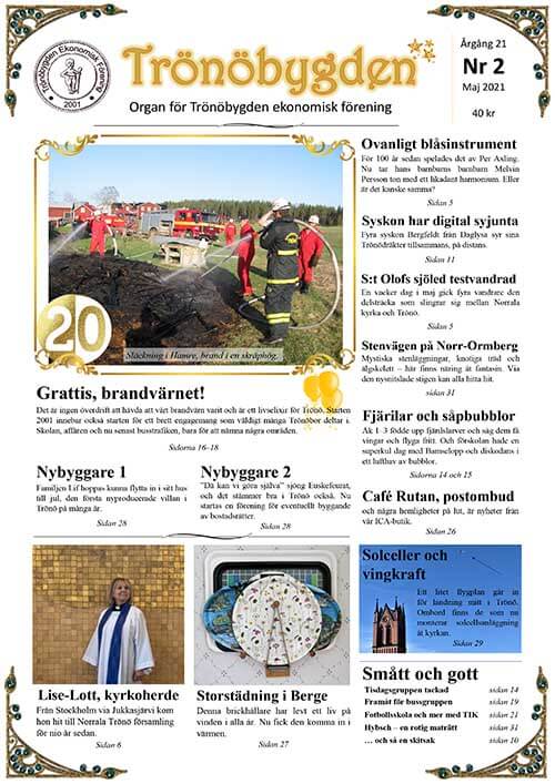 Vi vill rikta ett stort TACK till våra annonsörer, ert stöd är en förutsättning för att kunna ge ut vår tidning. Tidningen gavs ut första gången år 2001 och tillsammans med redaktionens frivilliga insatser och alla de Trönöbor som medverkar kan vi hålla en regelbunden utgivning av en bra bygdetidning för medlemmarna i Trönö Brandvärn och alla Trönövänner!