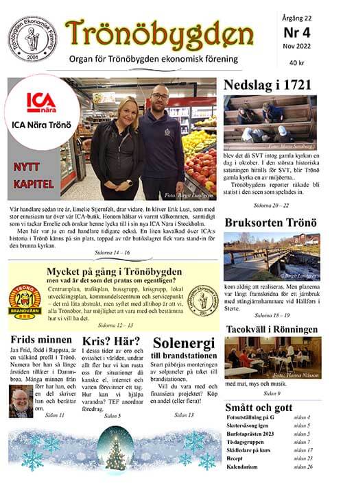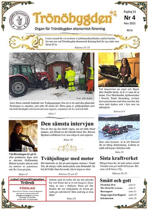 Vill du nå ut till bygdens invånare? Boka en annons i Trönöbygden! Kontakta oss för prisuppgifter och bokning.